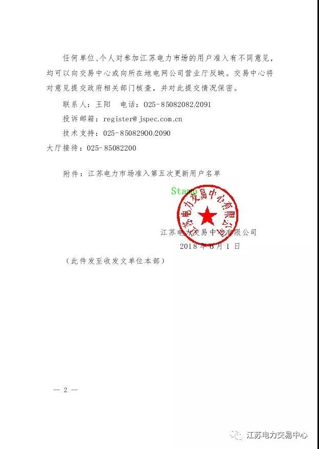 關(guān)于2018年江蘇電力市場(chǎng)準(zhǔn)入用戶名單第五次更新的公告