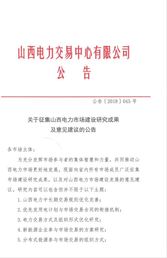 山西發(fā)布征集電力市場(chǎng)建設(shè)研究成果及意見(jiàn)建議的通知