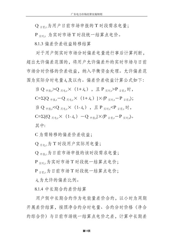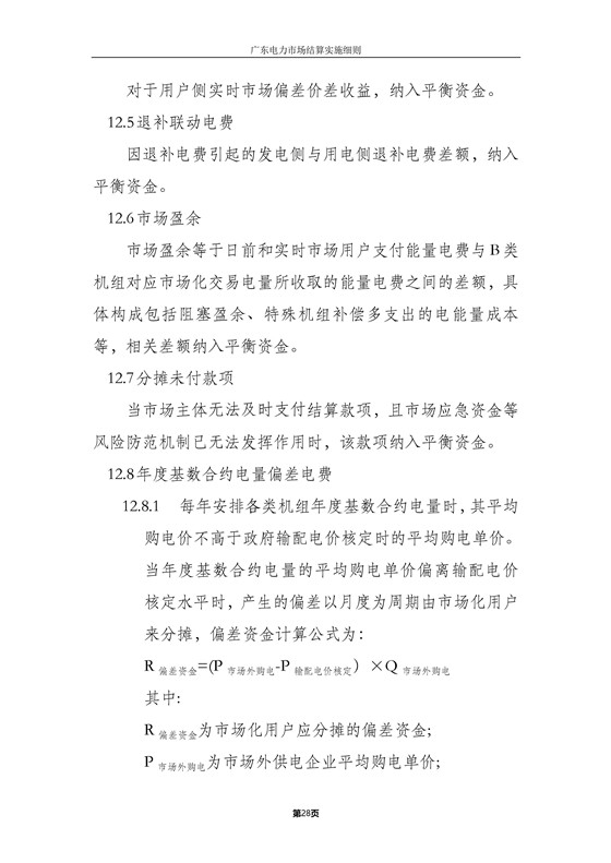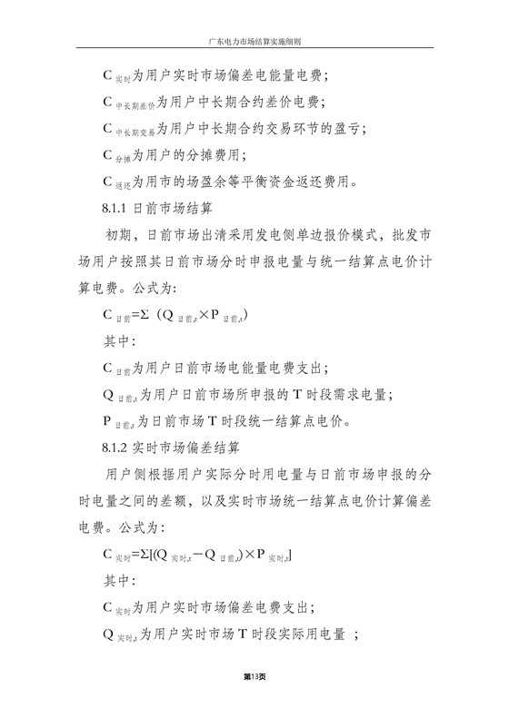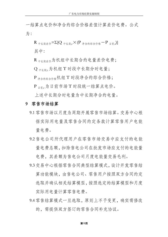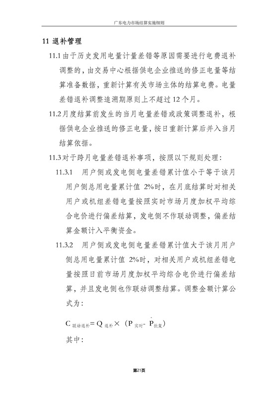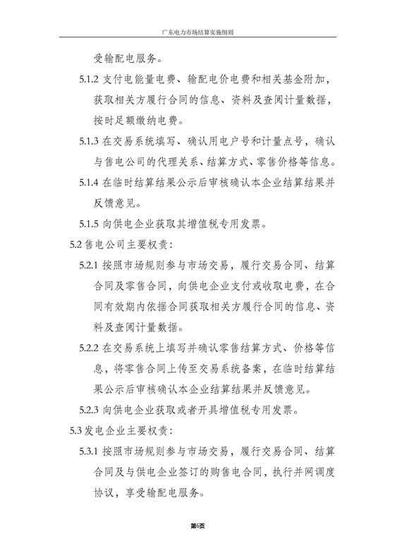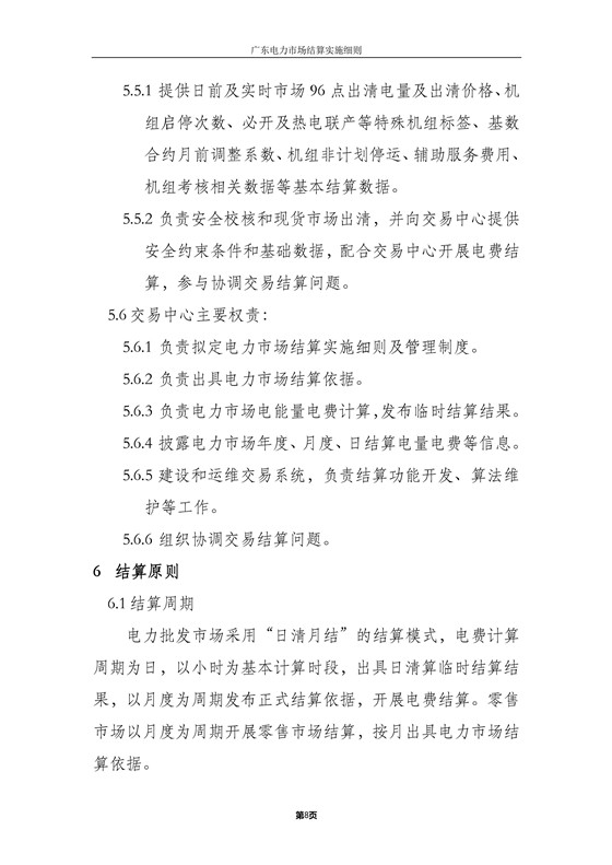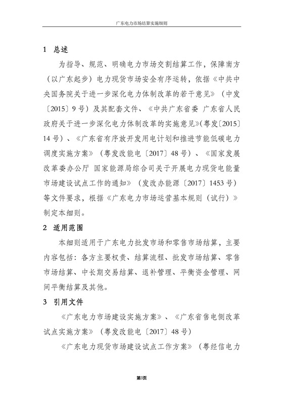 本細(xì)則適用于廣東電力批發(fā)市場和零售市場結(jié)算,主要內(nèi)容包括:各方主要權(quán)責(zé)、結(jié)算流程、批發(fā)市場結(jié)算、零售市場結(jié)算、中長期交易結(jié)算、退補(bǔ)管理、平衡資金管理、網(wǎng)間平衡結(jié)算及其他。