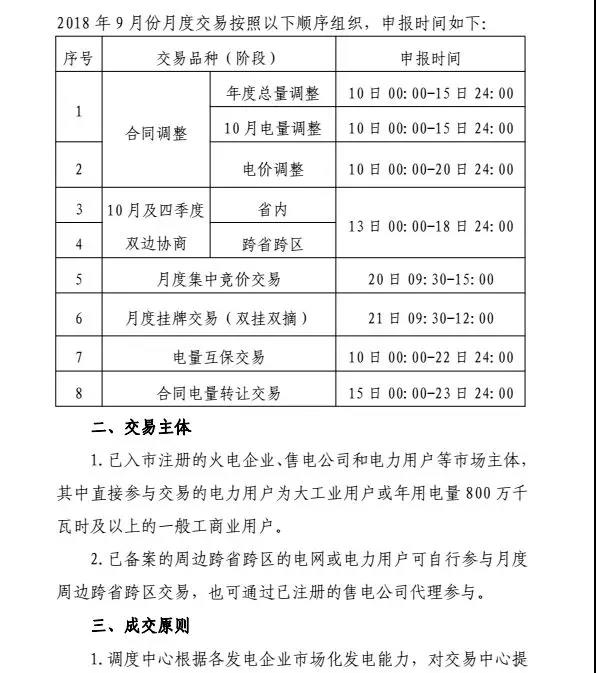 關(guān)于 2018 年9月開展市場(chǎng)化交易時(shí)間安排的通知