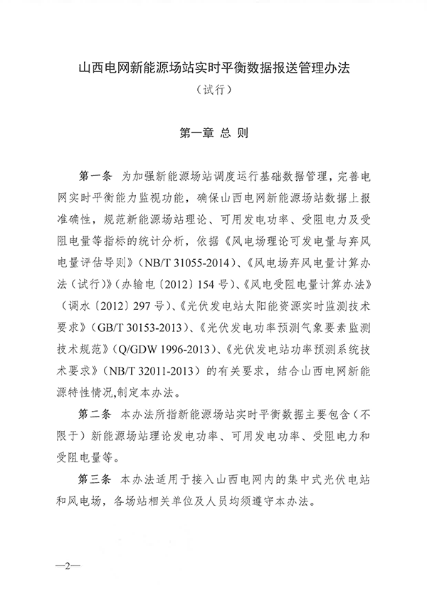 山西電網(wǎng)新能源場站實(shí)施平衡數(shù)據(jù)報(bào)送管理辦法(試行)