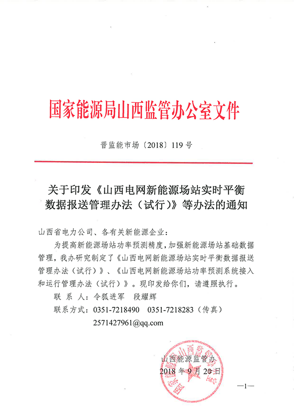 山西能源監(jiān)管辦關(guān)于印發(fā)《山西電網(wǎng)新能源場站實(shí)施平衡數(shù)據(jù)報(bào)送管理辦法(試行)》等辦法的通知.