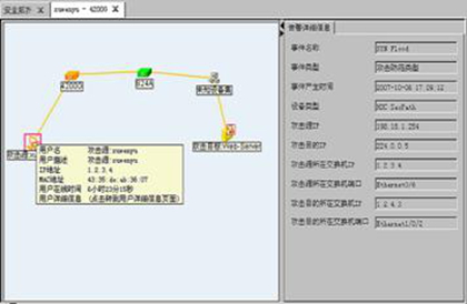 在獲取海量信息事件,分析掌握全網(wǎng)安全狀態(tài)的基礎(chǔ)上,將危害嚴(yán)重的安全事件與設(shè)備資源、用戶資源相結(jié)合,對(duì)攻擊源進(jìn)行拓?fù)涠ㄎ?,描繪攻擊拓?fù)?,協(xié)助管理員對(duì)已發(fā)生的安全事件進(jìn)行定位排查,并可通過(guò)響應(yīng)聯(lián)動(dòng)功能對(duì)攻擊源進(jìn)行控制、下線、提醒。