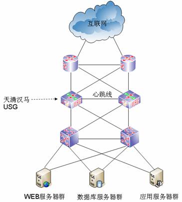 在重慶電力數(shù)據(jù)中心與機(jī)關(guān)網(wǎng)絡(luò)之間部署兩臺天清漢馬USG一體化安全網(wǎng)關(guān)作為主要防護(hù)設(shè)備。兩臺天清漢馬USG互為冗余備份,為用戶帶來更加簡單且全面的安全體驗。