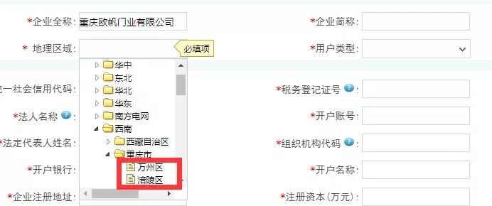 選擇地理區(qū)域,請(qǐng)選擇到最底級(jí),如某某區(qū)。
