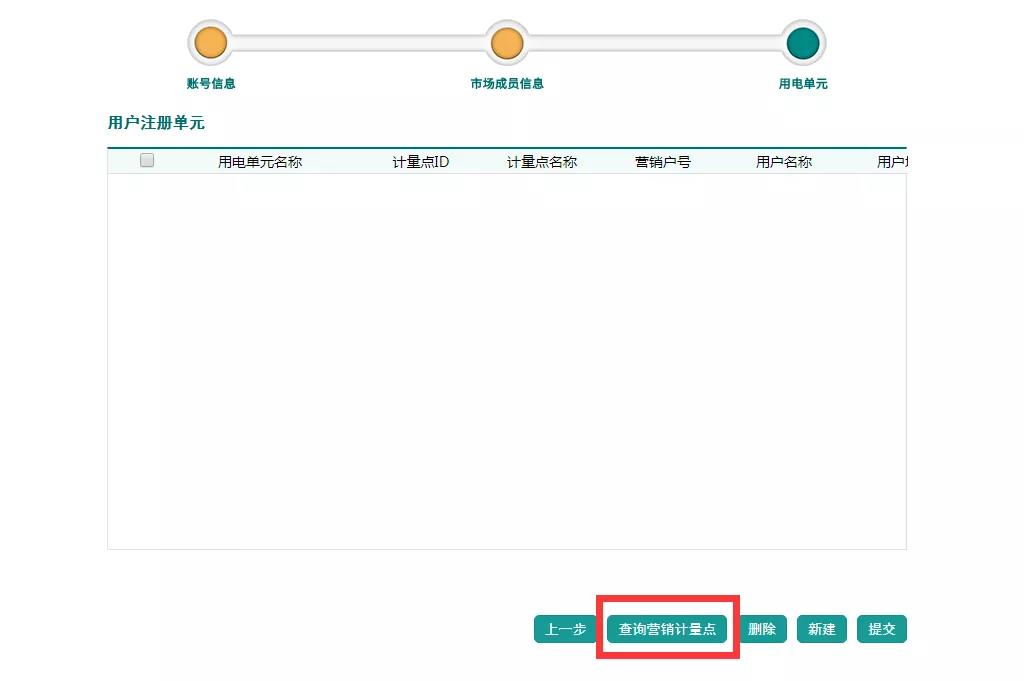 在用電單元注冊(cè)界面點(diǎn)擊查詢營(yíng)銷計(jì)量點(diǎn)