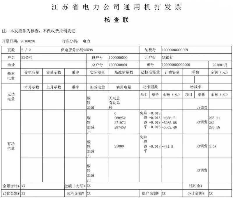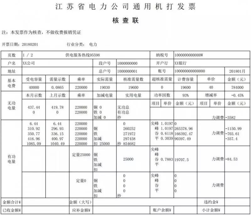 接下來我們翻到第二頁,這時(shí)我們發(fā)現(xiàn),第一頁中的峰平谷電量和定量25000千瓦時(shí)電量再次出現(xiàn)了,而且對(duì)應(yīng)的單價(jià)是一個(gè)負(fù)數(shù)。沒錯(cuò),這就是咱們當(dāng)月的優(yōu)惠電量了。江蘇省2018年電力市場(chǎng)用戶是全電量參與,因此咱們的每一度電都可以享受到優(yōu)惠。這里要注意,有的用戶會(huì)出現(xiàn)多行數(shù)據(jù),產(chǎn)生多頁核查聯(lián),但前后數(shù)據(jù)一定是一一對(duì)應(yīng)的哦。