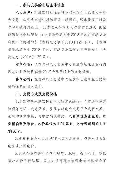 吉林2018年售電公司代理一般用戶年度交易:采取雙邊自主協(xié)商方式