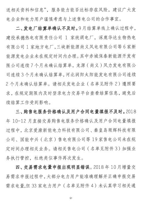 冀北電力市場主體運(yùn)作不規(guī)范情況通報(bào)(2018年第2期):21家售電公司未按要求補(bǔ)充完善注冊信息