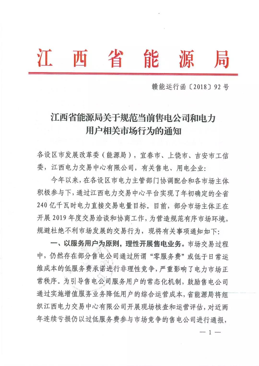 江西:通報(bào)近年連續(xù)虧損仍以過(guò)低服務(wù)費(fèi)參與市場(chǎng)競(jìng)爭(zhēng)的售電公司 嚴(yán)重者暫停售電業(yè)務(wù)