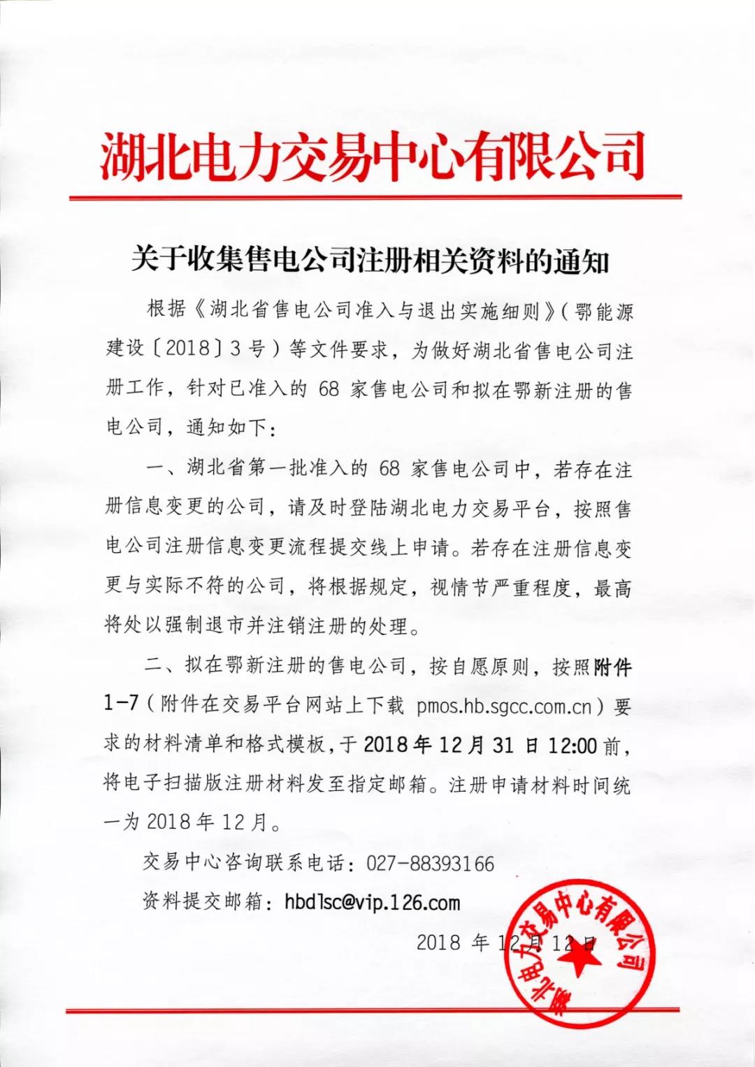 湖北關(guān)于收集售電公司注冊相關(guān)資料的通知