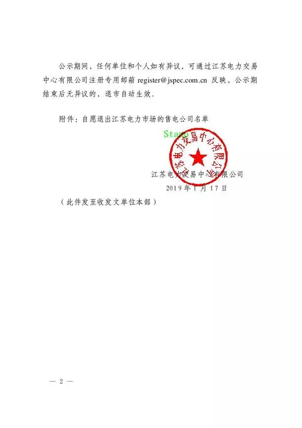 公示期間,任何單位和個(gè)人如有異議,可通過(guò)江蘇電力交易中心有限公司注冊(cè)專用郵箱register@jspec.com.cn反映,公示期結(jié)束后無(wú)異議的,退市自動(dòng)生效。