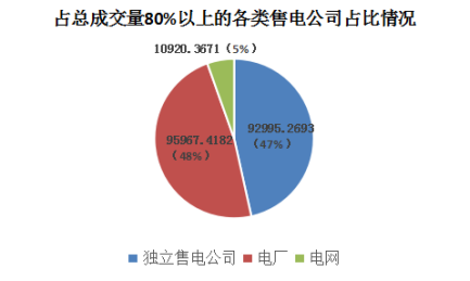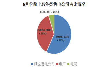附上6月份占總成交量80%以上的各類售電公司占比情況圖: