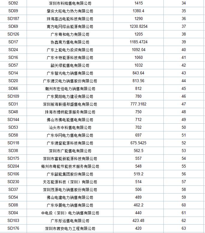 附:廣東售電公司6月份月度集中競(jìng)價(jià)成交統(tǒng)計(jì)表: