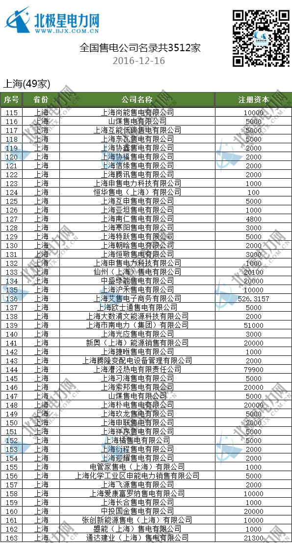 售電公司名單/全國已成立3512家售電公司(截止2016-12-16)