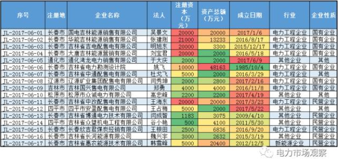 7月7日,吉林省首批17家售電公司公示,見下表: