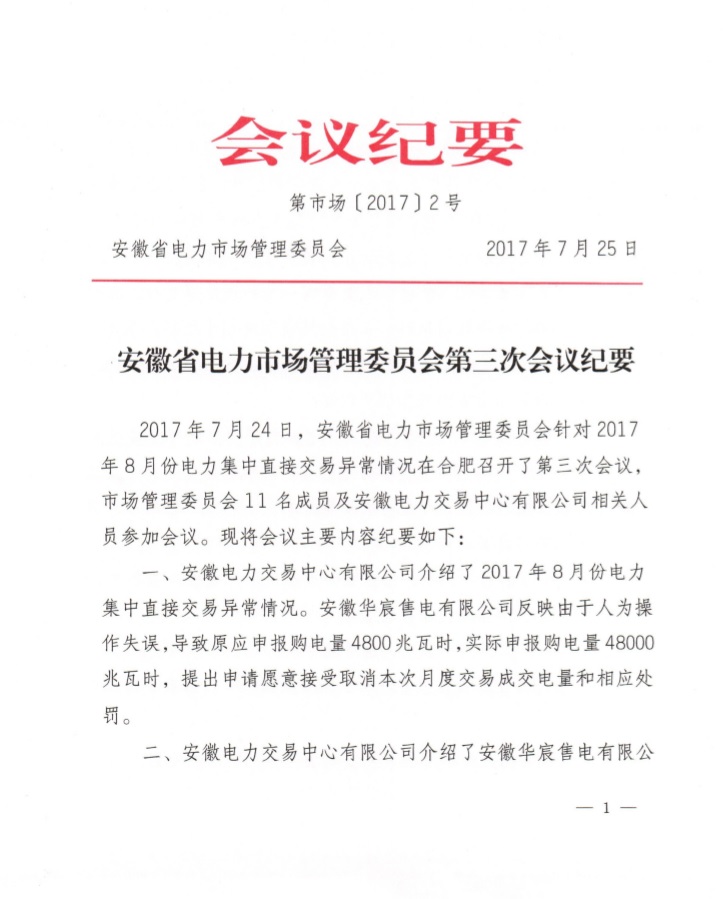 2017年7月的月度電力集中交易,安徽華宸售電有限公司操作員在申報(bào)電量時(shí),本來(lái)要報(bào)4800兆瓦時(shí)電量,結(jié)果多輸入一個(gè)0......