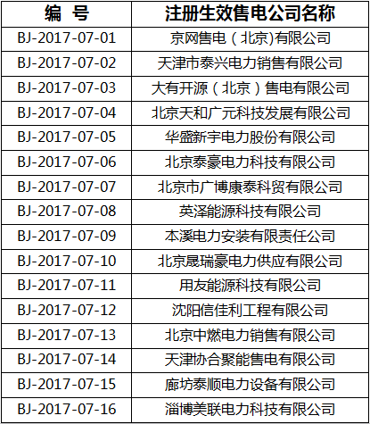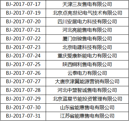 北京電力交易中心于2017年8月7日至2017年9月6日對京網(wǎng)售電(北京)有限公司等31家售電公司市場注冊申請材料進行了公示。