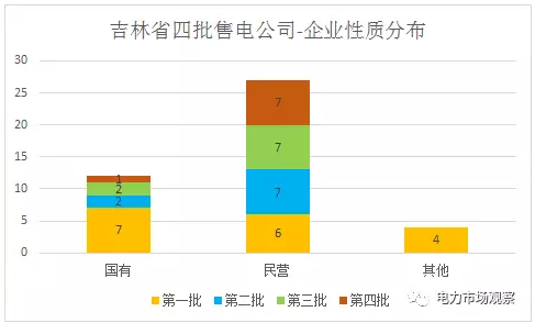 目前,吉林電力交易中心分別于7月7日、8月3日、9月1日以及11月1日公示了四批售電公司,共計(jì)43家。其中,第一批17家,第二批9家,第三批9家,第四批8家。值得一提的是,第二批和第三批售電公司中各有1家跨省售電公