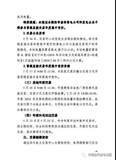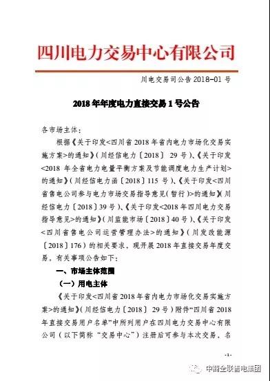 2018年4月16日,四川省電力交易中心發(fā)布了《四川省2018年年度直購電交易1號(hào)公告》。公告中對(duì)2018年直接交易相關(guān)事宜進(jìn)行性了規(guī)定。