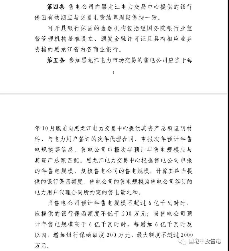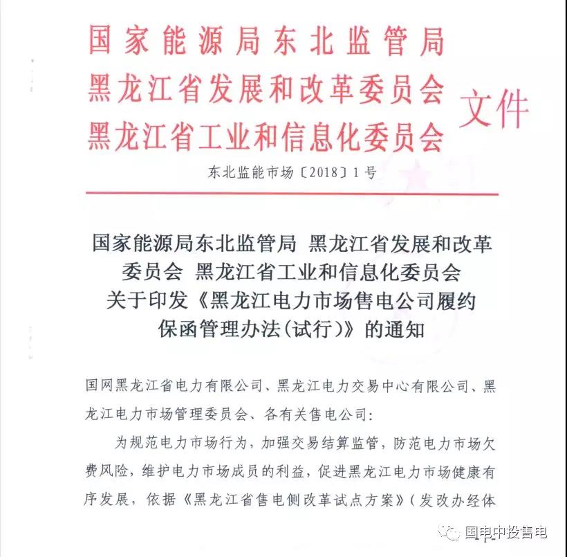 黑龍江電力市場(chǎng)售電公司履約保函管理辦法(試行)