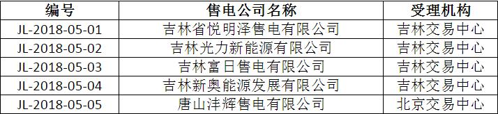 吉林電力交易中心有限公司關(guān)于公示2018年第五批受理注冊(cè)售電公司相關(guān)信息的公告