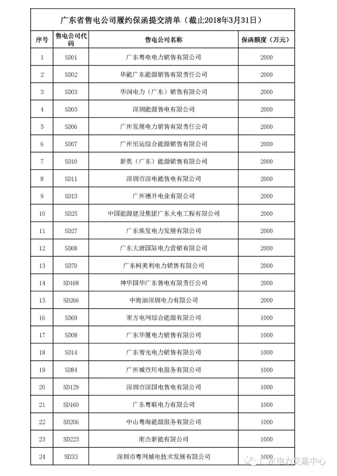 廣東電力交易中心日前發(fā)布了《售電公司履約保函提交清單的通知》,截至2018年3月31日,廣東電力交易中心累計收到履約保函148份,保函金額合