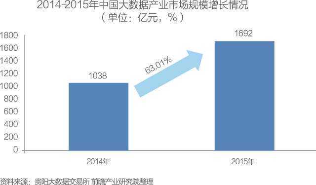 據(jù)貴陽大數(shù)據(jù)交易所發(fā)布的《2016年中國大數(shù)據(jù)交易產業(yè)白皮書》數(shù)據(jù)顯示,2014年,中國大數(shù)據(jù)產業(yè)規(guī)模大約為1038億元,2015年產業(yè)整體規(guī)模達到1692億元。隨著大數(shù)據(jù)應用范圍的不斷擴大,大數(shù)據(jù)所形成的價值正在快速提升。