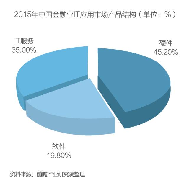 在產品投資類別方面,硬件依舊是2015年金融行業(yè)用戶投資購買最重要的產品類別,占整體IT應用市場的45.20%;其次是IT服務,占整體IT應用市場的35.00%;2015年金融行業(yè)用戶對軟件產品的投資購買需求規(guī)模在整體IT應用市場中的比重為19.80%。