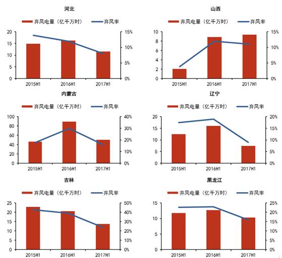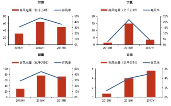 2015H1-2017H1主要棄風(fēng)省份棄風(fēng)限電