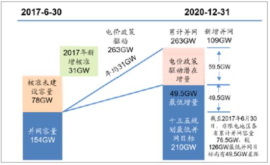 截止2016年年底,我國已核準(zhǔn)未建設(shè)的風(fēng)電項(xiàng)目合計容量在84GW,同時國家能源局在2017年7月發(fā)布了《2017-2020年風(fēng)電新增建設(shè)規(guī)模方案》提出2017年新增建設(shè)規(guī)模30.65GW。而電價調(diào)整政策規(guī)定,2018年1月1日前核準(zhǔn),2019年底前建設(shè)的項(xiàng)目得0.47-0.60元/Kwh的上網(wǎng)電價,否則上網(wǎng)電價將被調(diào)整為0.40-0.57元/Kwh。上述項(xiàng)目需要在2020年前開工建設(shè)才能獲得較高的電價,即使除去因各種原因不能建設(shè)的風(fēng)電項(xiàng)目,年均項(xiàng)目的建設(shè)規(guī)模也有可能超過25GW。