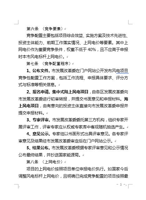 上海市發(fā)改委發(fā)布《上海市風(fēng)電項(xiàng)目競(jìng)爭(zhēng)配置管理辦法》