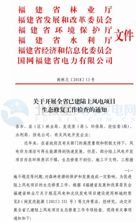 福建省林業(yè)廳:已建陸上風(fēng)電項(xiàng)目生態(tài)修復(fù)不達(dá)標(biāo) 或暫停其上網(wǎng)電費(fèi)結(jié)算、列入失信名單?。ǜ酵ㄖ?/h1>
