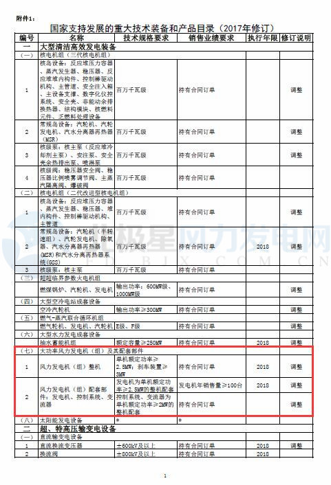 附件:1.國家支持發(fā)展的重大技術(shù)裝備和產(chǎn)品目錄(2017年修訂)