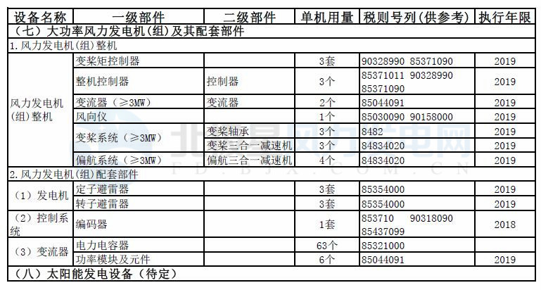 進(jìn)口不予免稅的重大技術(shù)裝備和產(chǎn)品目錄(2017年修訂)【風(fēng)電部分節(jié)選】