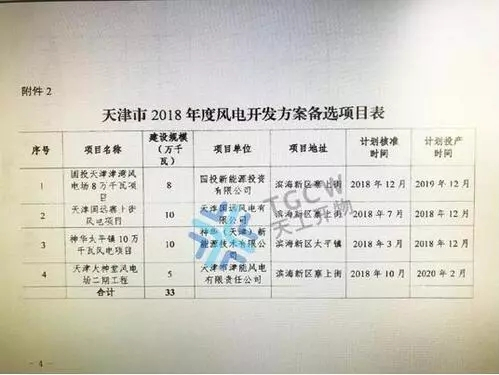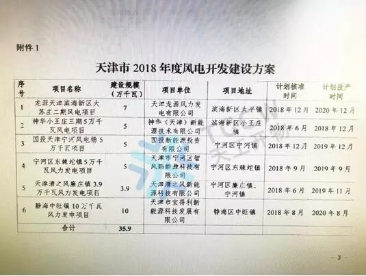 2018年:6個(gè)風(fēng)電項(xiàng)目列入天津市2018年度風(fēng)電開發(fā)建設(shè)方案,總裝機(jī)35.9萬千瓦。同時(shí)安排4個(gè)風(fēng)電開發(fā)備選項(xiàng)目,總裝機(jī)33萬千瓦。