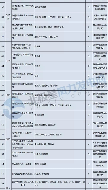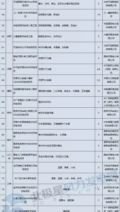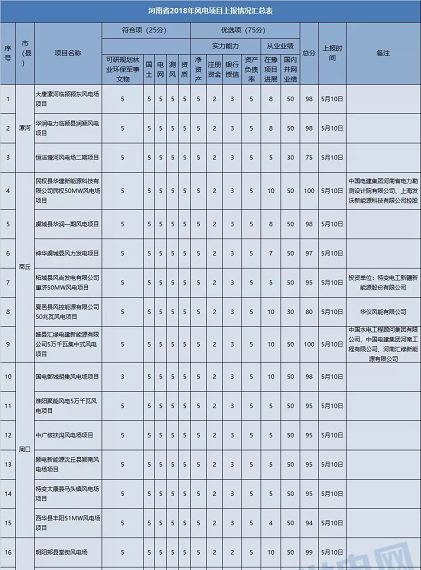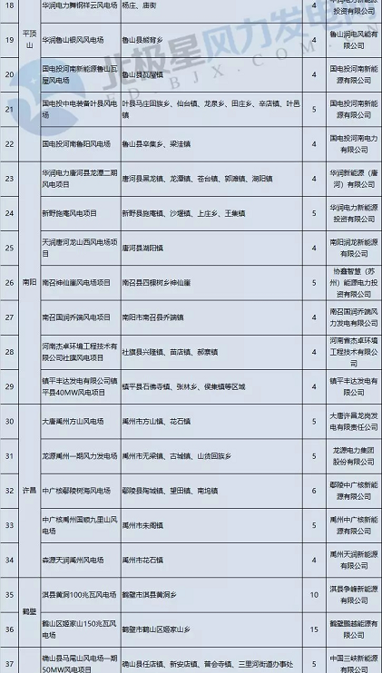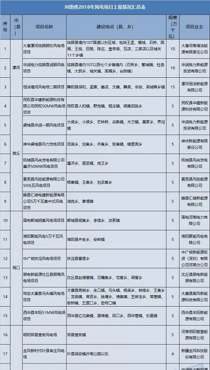 河南省2018年風(fēng)電項(xiàng)目上報(bào)情況匯總表