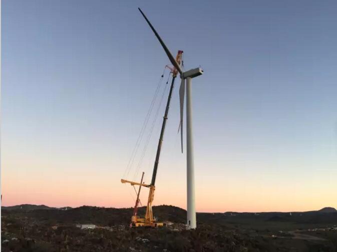 2017年4月,龍?jiān)茨戏堑掳⒁黄陲L(fēng)電項(xiàng)目完成全部67臺風(fēng)電機(jī)組吊裝。