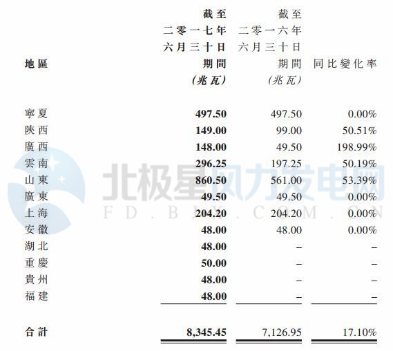 2017上半年大唐新能源風(fēng)電按地區(qū)控股發(fā)電量數(shù)據(jù)