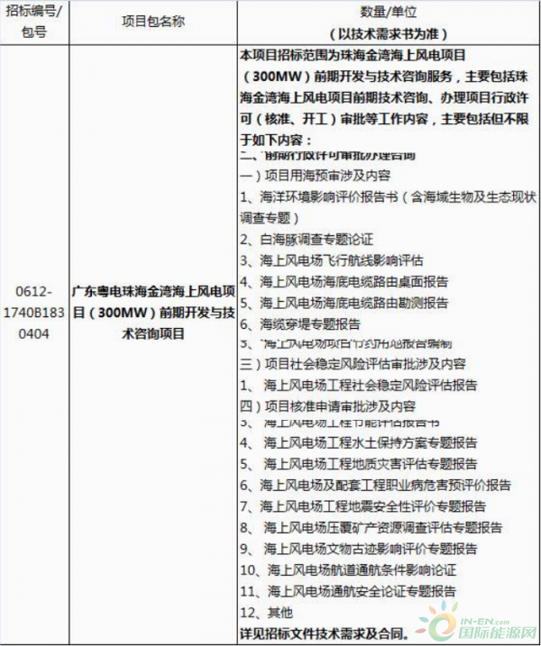 2.3招標范圍:珠海金灣海上風電項目(300MW)前期開發(fā)與技術咨詢服務,詳細內(nèi)容請參閱招標文件。投標人必須對投標的全部內(nèi)容進行投標報價,如有缺漏將導致投標無效。
