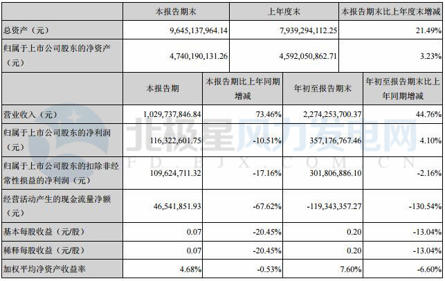 天順風(fēng)能第三季度實(shí)現(xiàn)凈利1.16億元 同比下降10.51%