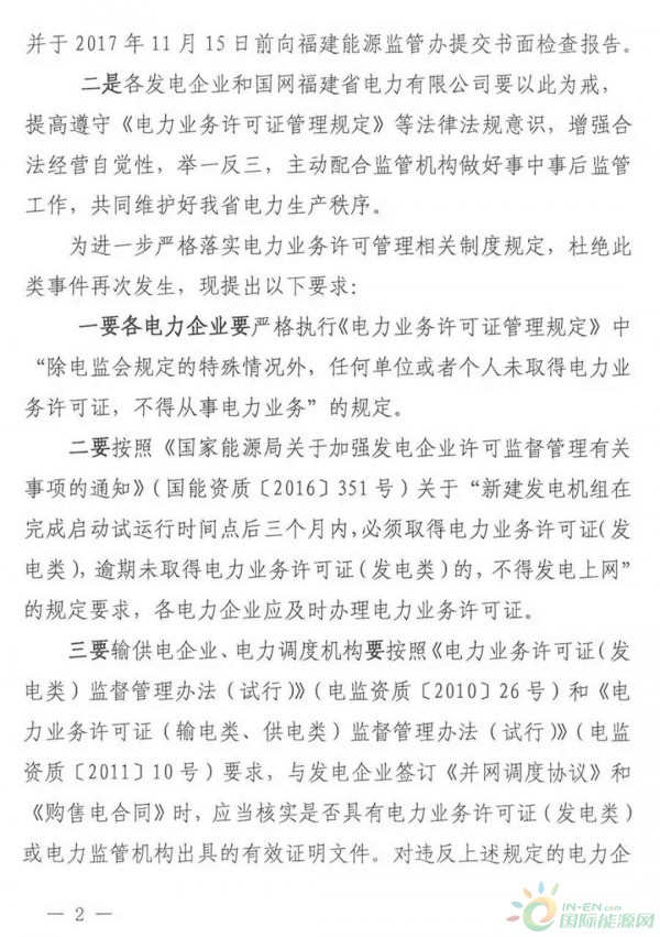 通報(bào) | 福建能源監(jiān)管辦關(guān)于福建龍?jiān)春I巷L(fēng)力發(fā)電有限公司等電力企業(yè)執(zhí)行《電力業(yè)務(wù)許可證管理規(guī)定》不嚴(yán)的