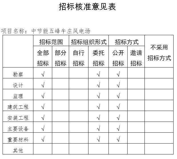 五、請嚴格按照本核準意見實施招標。招標范圍、招標組織形式、招標方式等要求見《招標核準意見表》(附后)。