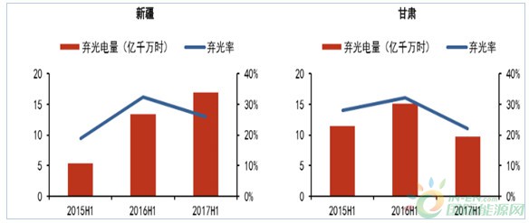 2015H1-2017H1 主要棄光省份棄光限電情況