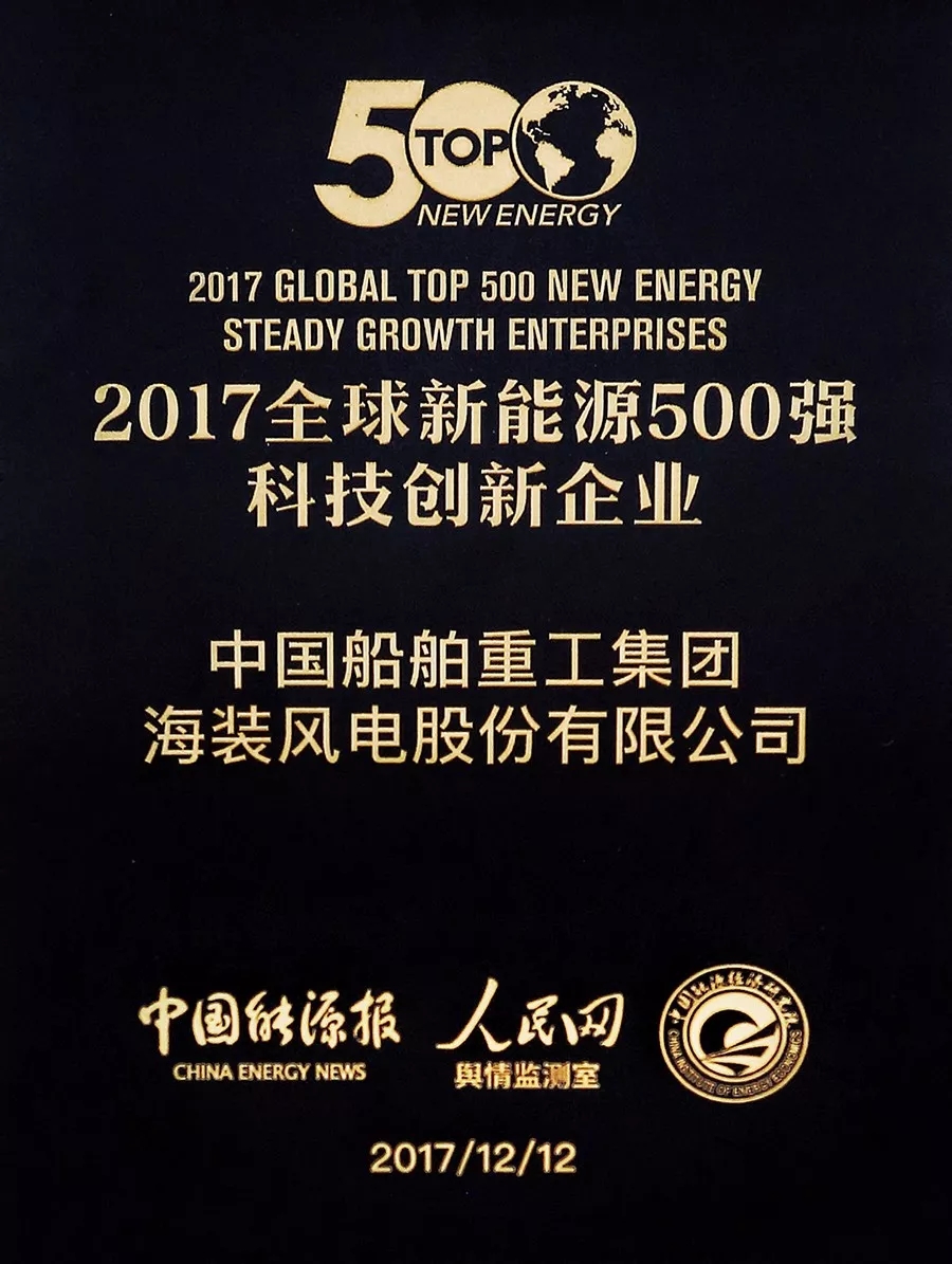 12月12日,“一帶一路”國際能源高峰論壇暨第七屆全球新能源企業(yè)500強(qiáng)峰會(huì)在人民網(wǎng)1號(hào)演播廳舉行。中國海裝蟬聯(lián)“全球新能源企業(yè)500強(qiáng)”榜單,并獲得組委會(huì)特別頒發(fā)的全球新能源企業(yè)“科技創(chuàng)新獎(jiǎng)”。