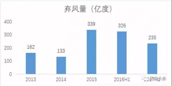 2013-2015年及2016、2017年上半年棄風(fēng)電量(億度)