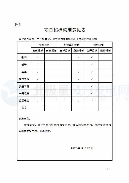 附件:項(xiàng)目招標(biāo)核準(zhǔn)意見表