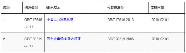 2月1日起,又有兩項風電國家標準正式實施,如下所示: