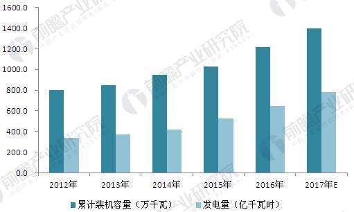 圖表5:2012-2017年生物質(zhì)能發(fā)電裝機容量與發(fā)電量情況(單位:萬千瓦,億千瓦時)