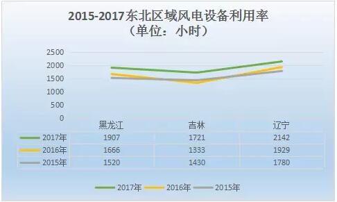 從風電設備利用率來看,2017年東北區(qū)域的棄風限電問題得到了明顯好轉。黑龍江、吉林、遼寧2017年風電設備利用小時數(shù)分別為1907小時、1721小時、2142小時,同比增長14.5%、29.1%、11.0%。